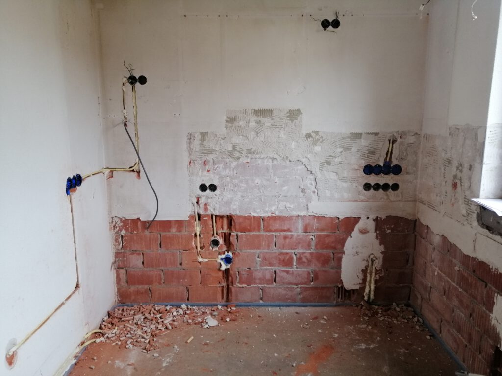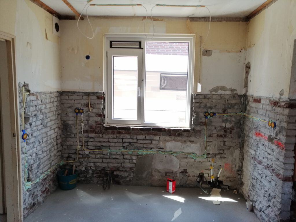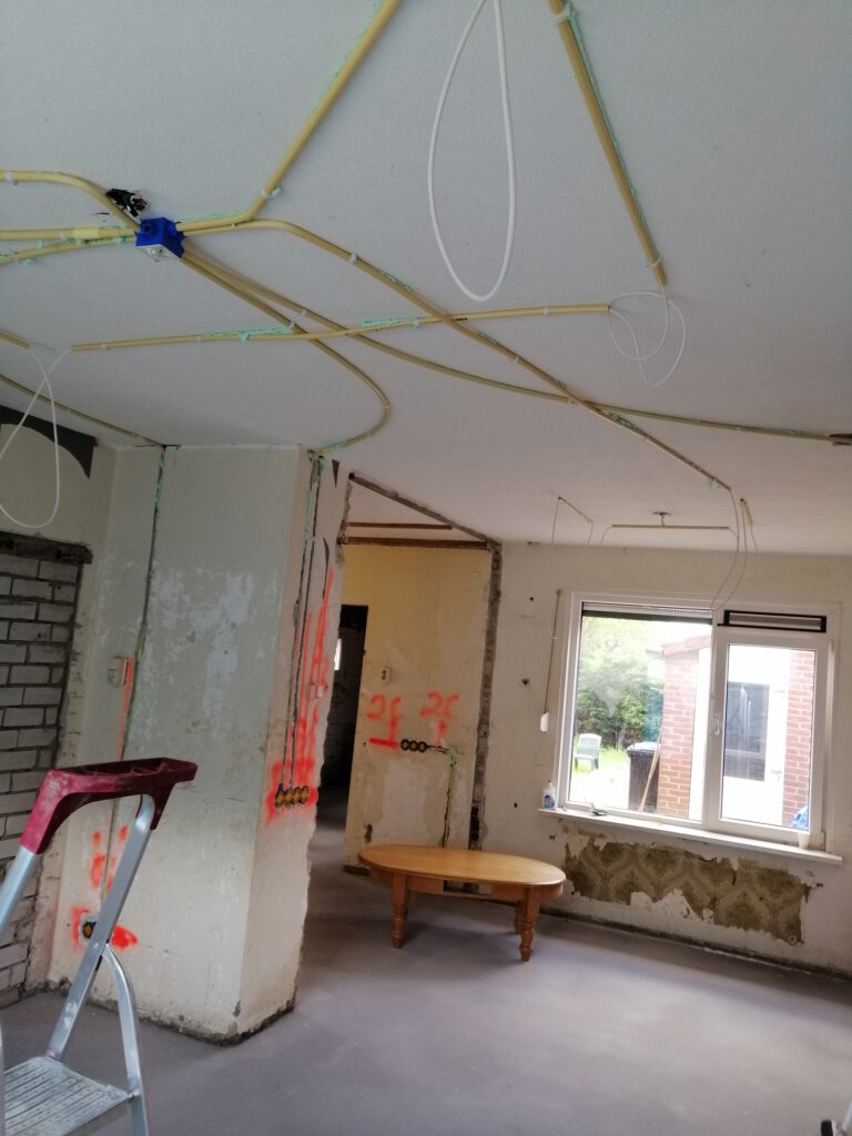 Renovatie werk woningen, sleuven freezen en leidingen plaatsen.